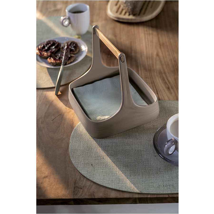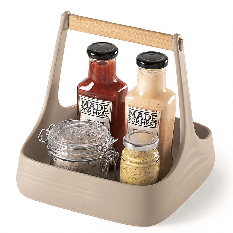 В качестве исходного сырья выступают пластиковые бутылки объемом 1,5 л. Дизайн изделия напоминает керамику. Реалистичности внешнему виду придают тщательно подобранные пастельные цвета и намеренно неровные круговые рисунки, создающие эффект ручной работы. Органайзер отлично гармонирует с другими предметами коллекции Tierra.