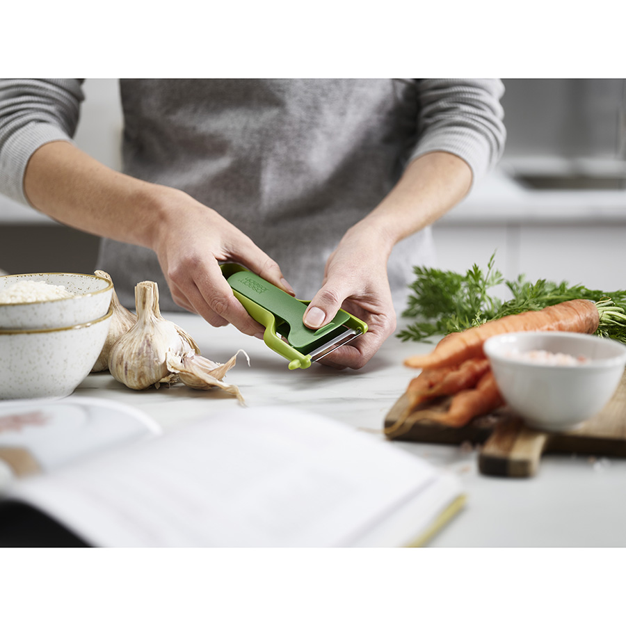 Овощечистка с горизонтальным гладким лезвием SafeStore зеленая, Joseph Joseph
