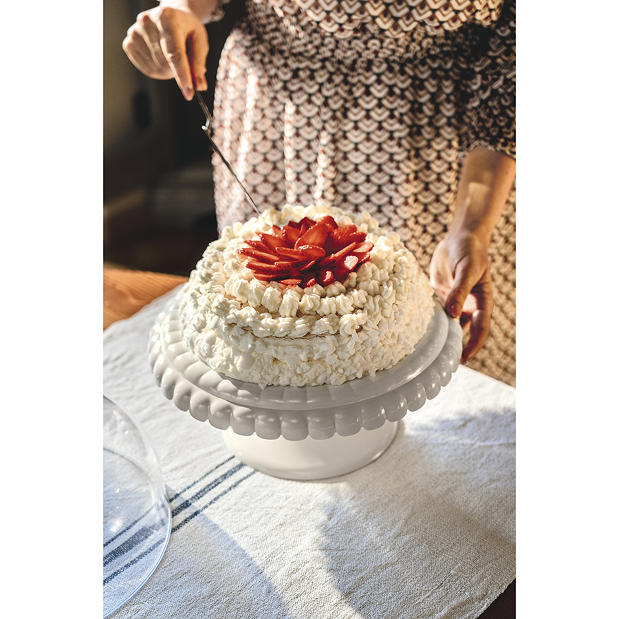 Блюдо диаметром 30 см идеально подойдет для подачи выпечки, сладостей, небольших закусок и, конечно, тортов. Крышка защитит продукты от заветривания, насекомых и других внешних факторов, что особенно важно для дачной или уличной сервировки.
