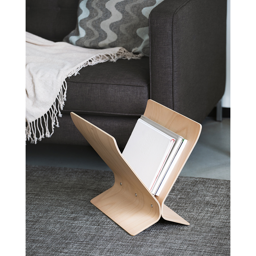 Изделие инновационной V-образной формы, выполненное из древесины тополя, преобразит интерьер и поможет навести порядок в комнате: любимые журналы и книги всегда будут под рукой.