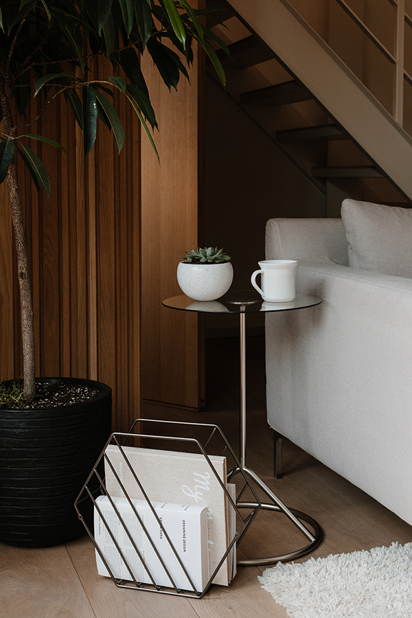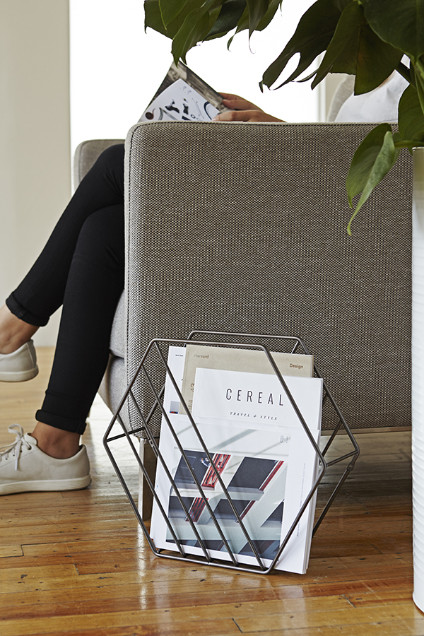 Графичная подставка для газет и журналов, в котором можно храненить книги или планшет – стильное и функциональное решение для вашей гостиной.