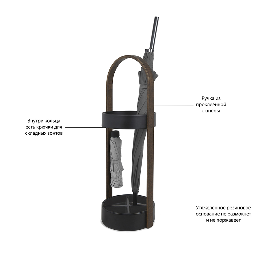 Подставка для зонтов HUB чёрный-орех, Umbra