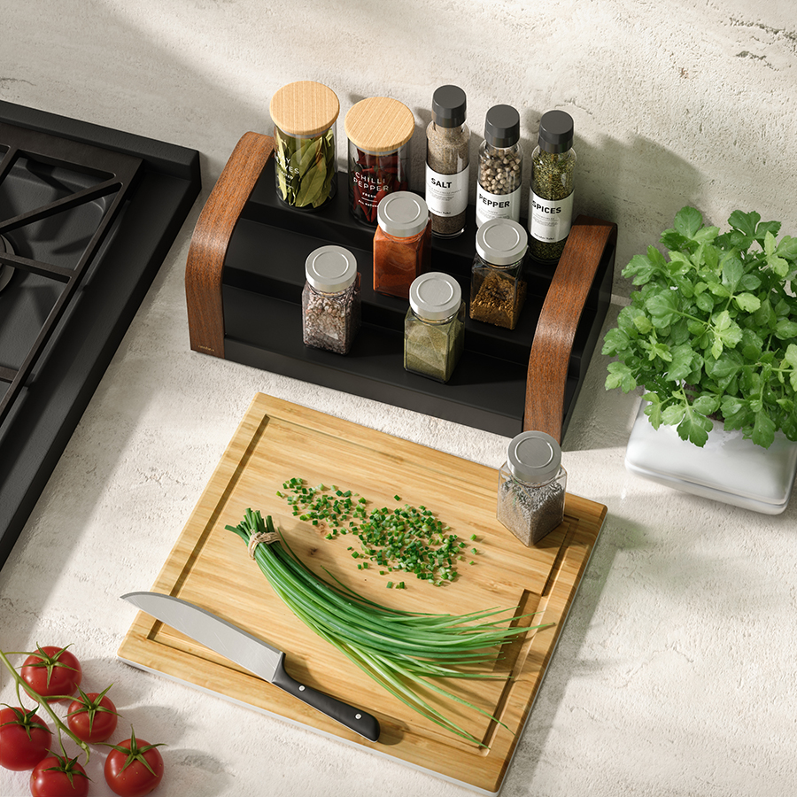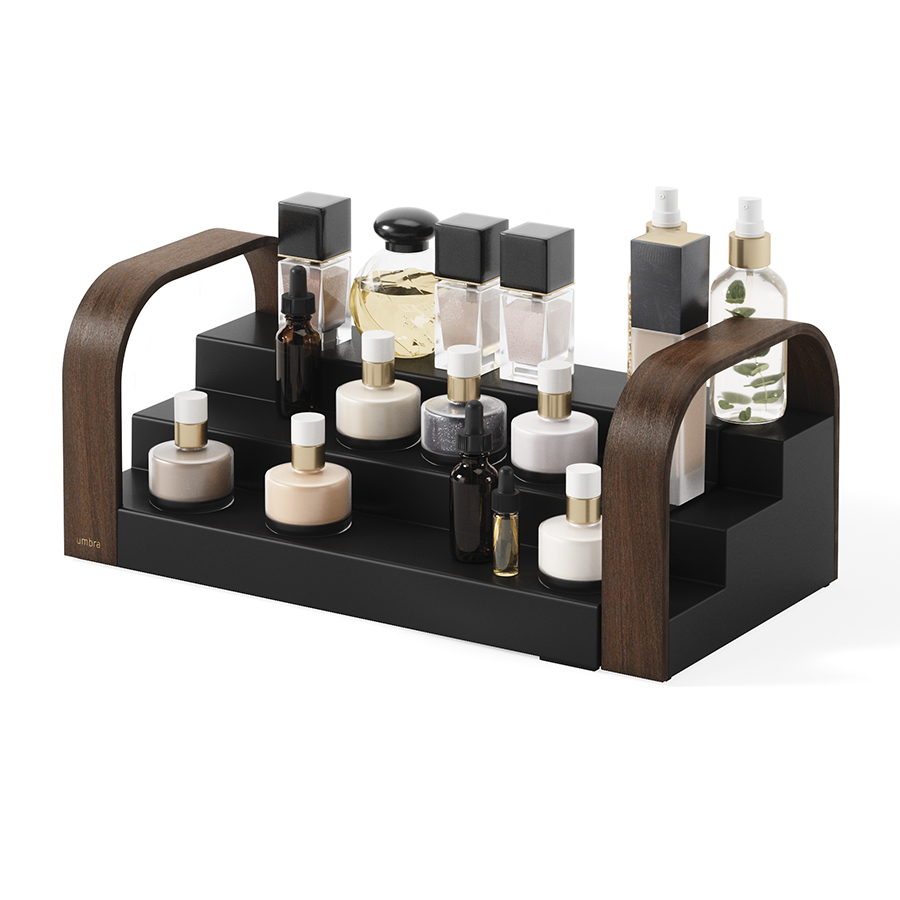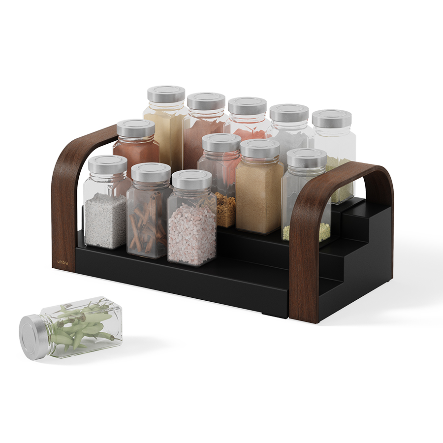 Полка для специй трехъярусная раздвижная Bellwood, черная/орех, UMBRA