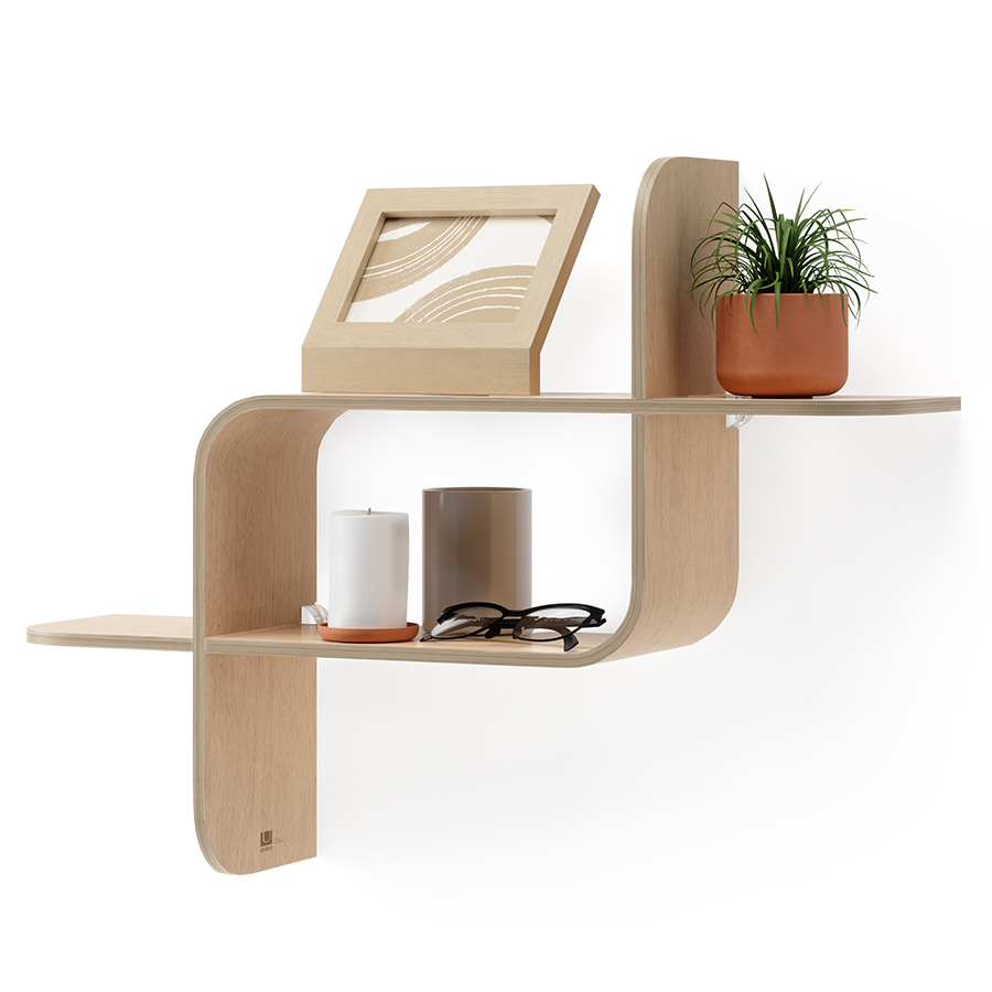 "Полка Montage – великолепное сочетание современного дизайна и натуральных материалов. За счет уникальной изогнутой формы образуется четыре поверхности, которые можно задействовать под книги, декор, комнатные растения и прочее. В зависимости от особенностей интерьера, конструкцию можно крепить на стене как горизонтально, так и вертикально. Мебель из дерева наполняет пространство природным теплом и отлично интегрируется в различные стилевые решения. Полка подходит для прихожей, гостиной, спальни, кабинета, офиса.