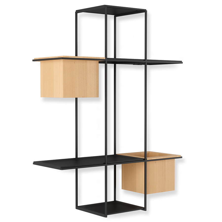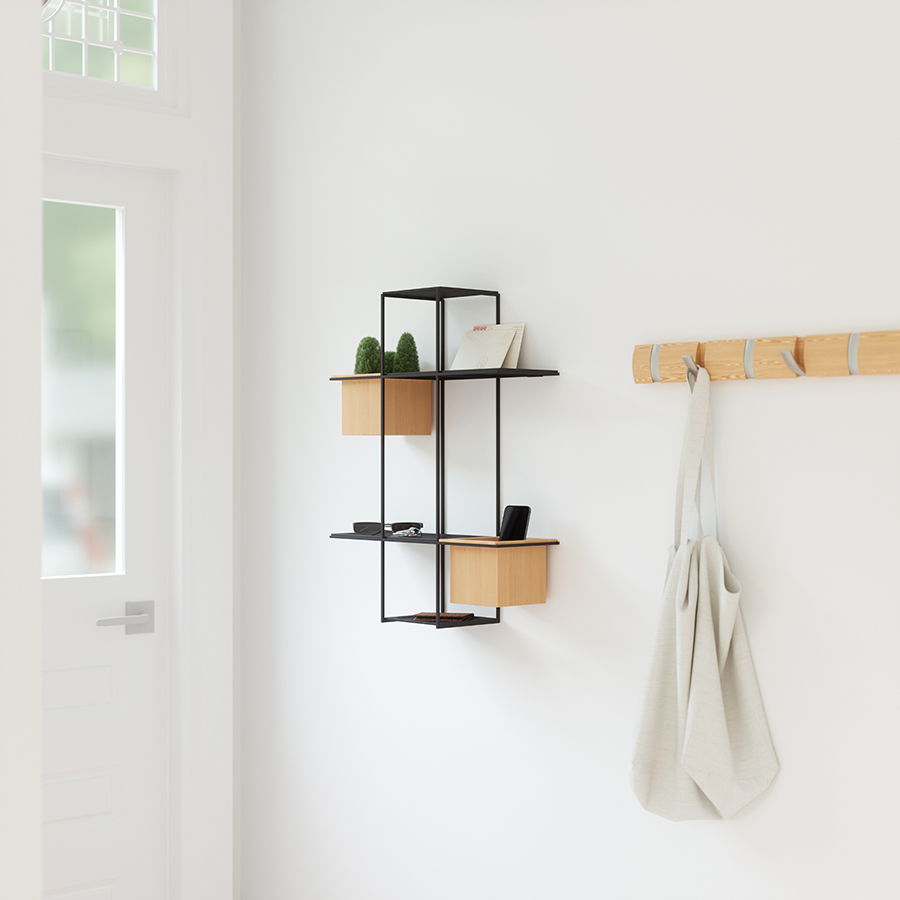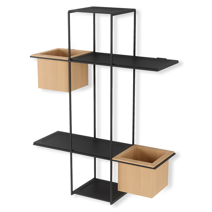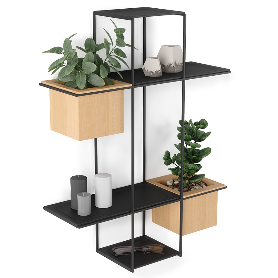 Полка-органайзер с 2 кашпо Cubist Multi черная, Umbra