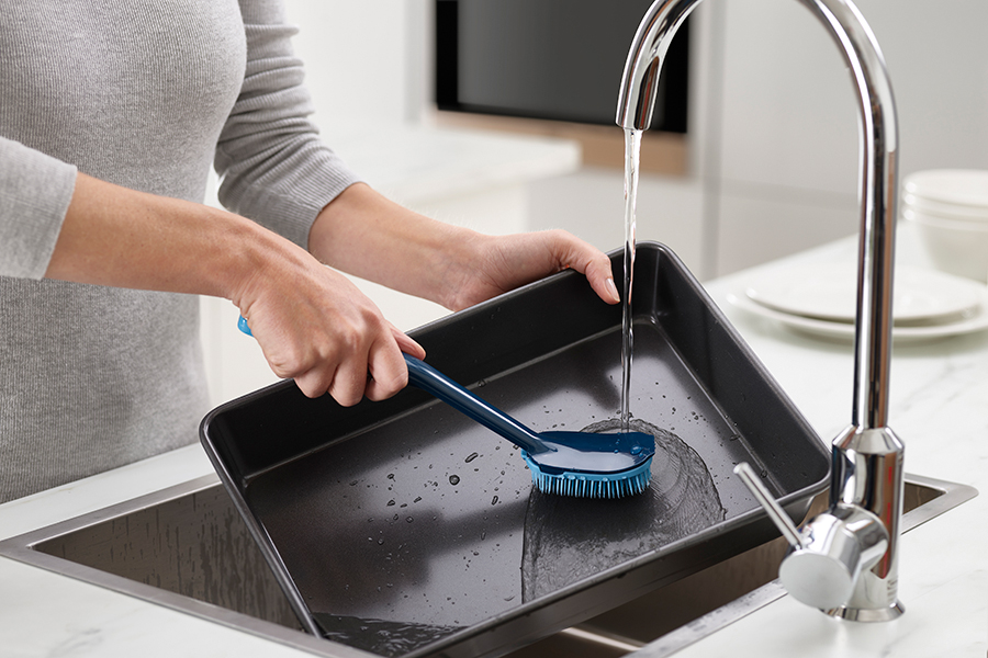 Полимерная щетина изделий не дает скапливаться грязи, не впитывает воду и быстро сохнет. Щетка эффективно очищает любые загрязнения даже с антипригарной посуды.