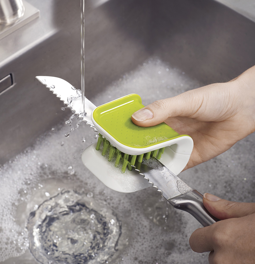Небольшая щетка подойдет для быстрого и безопасного мытья столовых приборов и ножей.