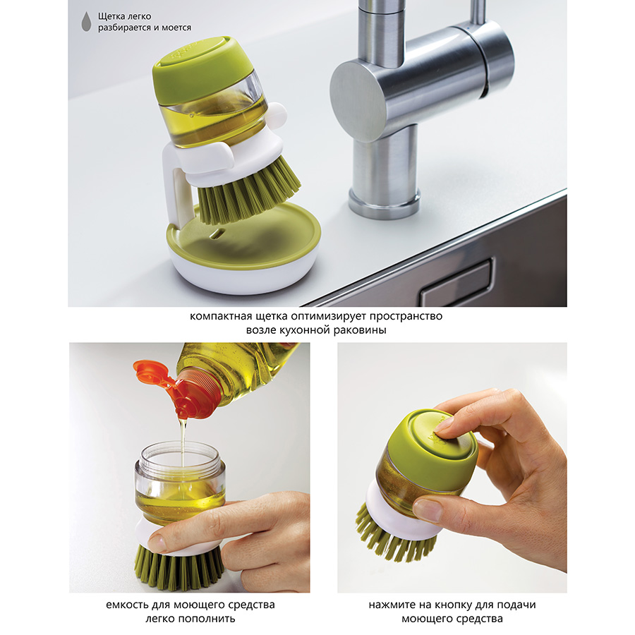 Щетка с дозатором моющего средства Palm Scrub™ зеленая, Joseph Joseph