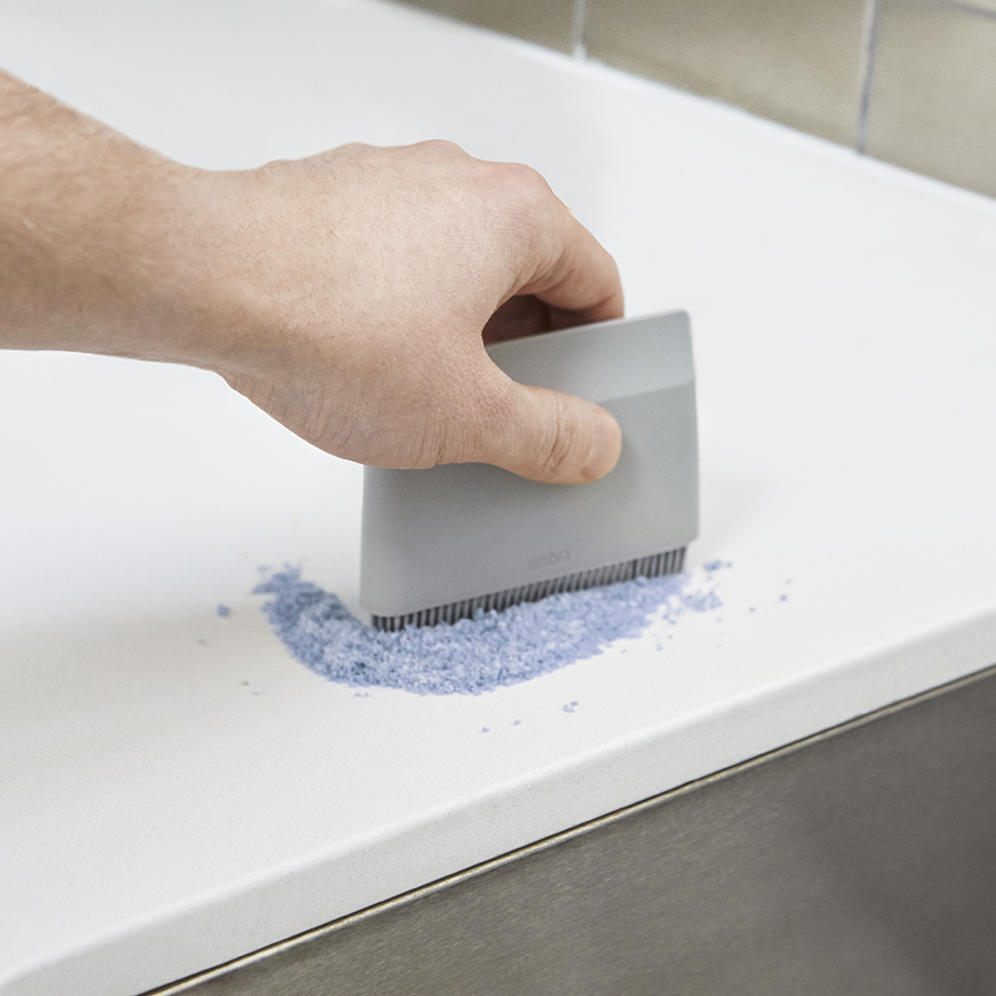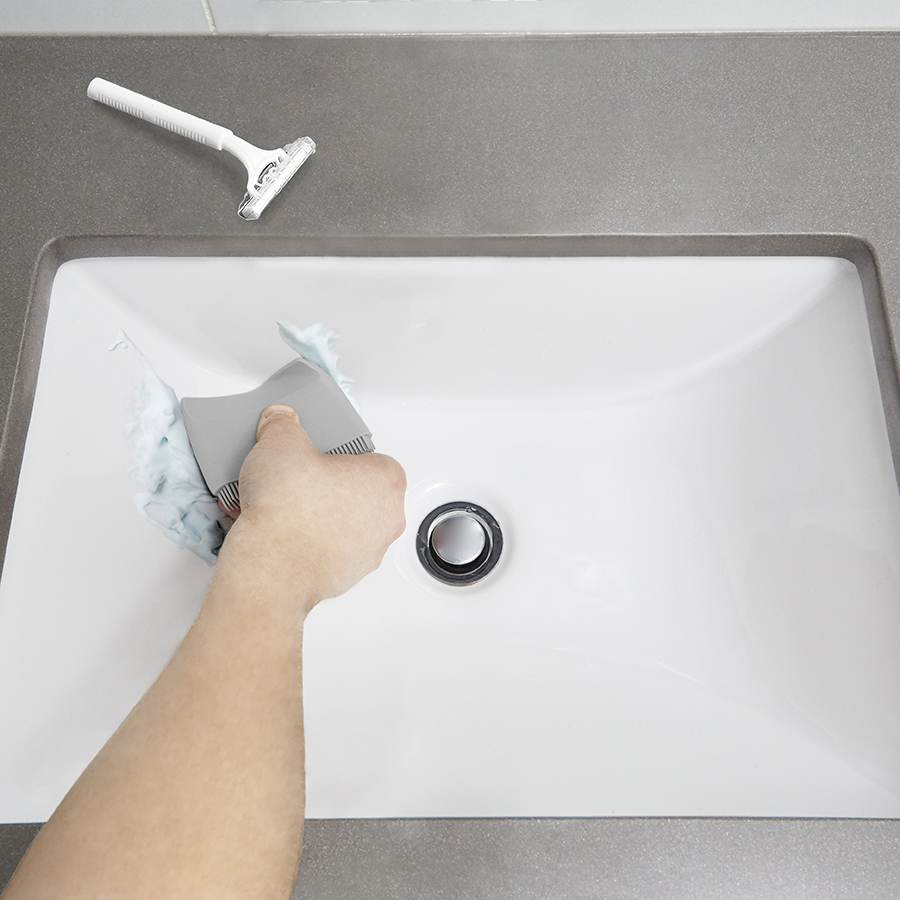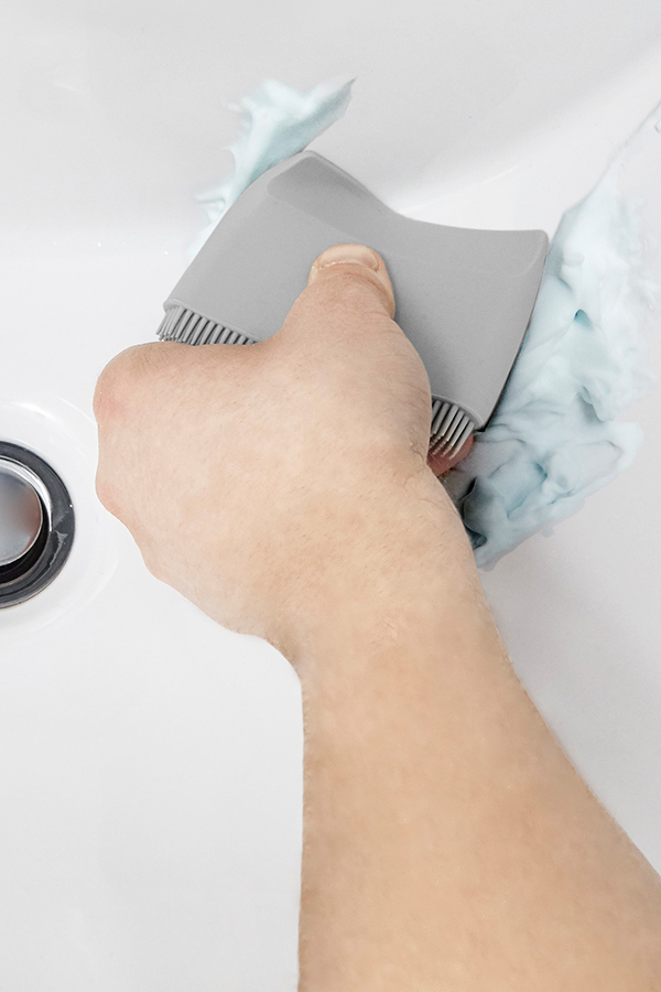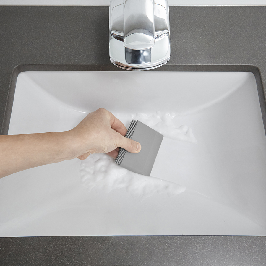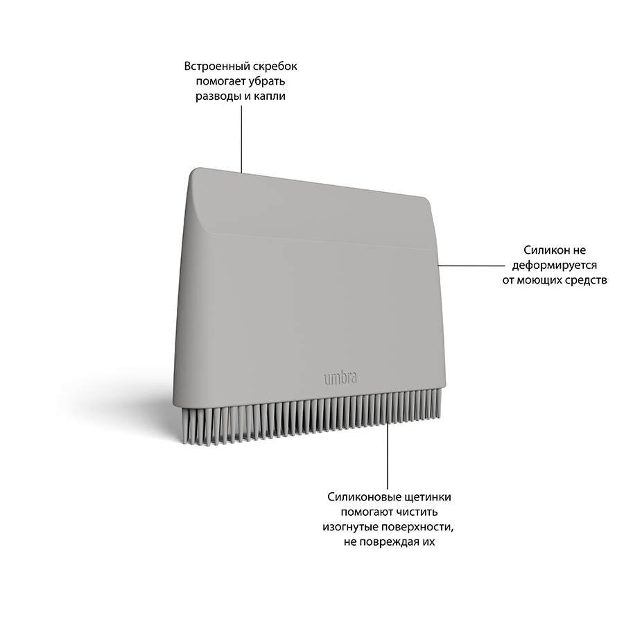 Мягкая щетина быстро очищает эмалированные, стальные, пластиковые поверхности и не дeформируется от бытовой химии. Ручка является одновременно скребком, которым удобно собирать конденсат с зеркала или стекла душевой, чтобы предотвратить появление разводов и следов от капель. Сочетается с другими аксессуарами коллекции Flex.