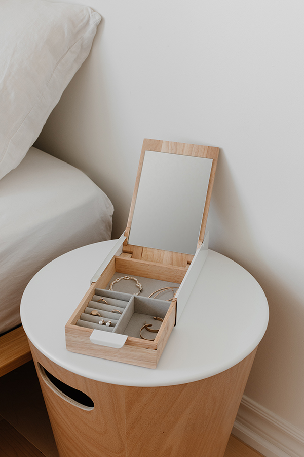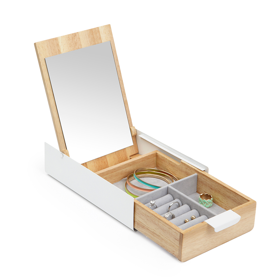 Потяните за ручку, и конструкция откроется. Несколько отделений помогут разместить аксессуары так, чтобы они не спутались и не смешались.