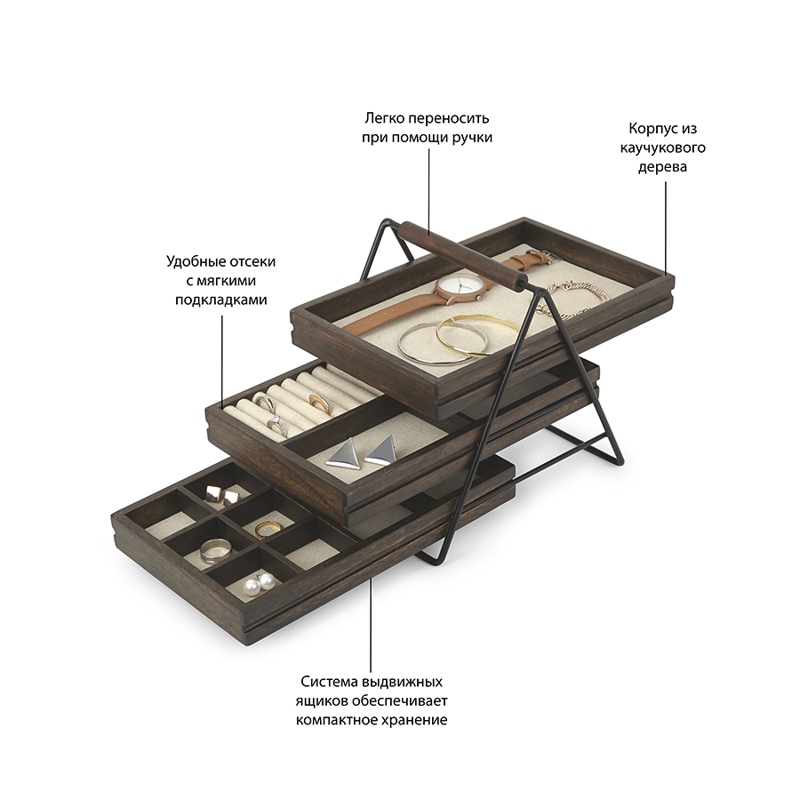 Шкатулка для украшений TERRACE орех, Umbra