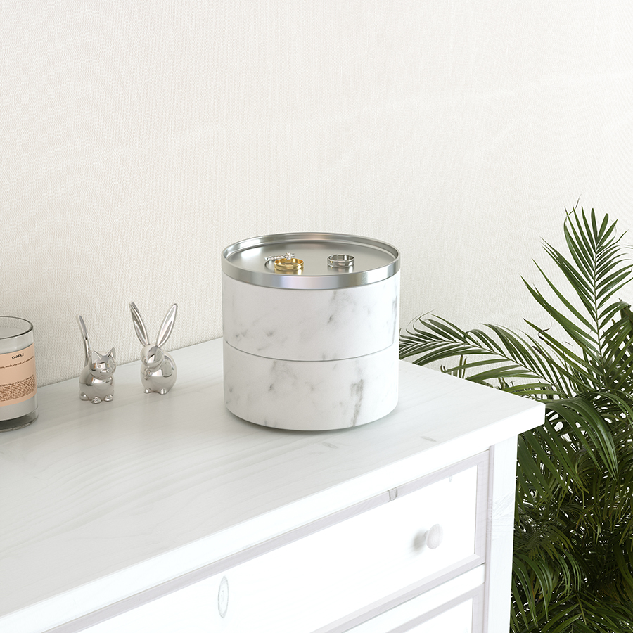 Шкатулка с двумя ярусами позаботится об украшениях и украсит пространство.