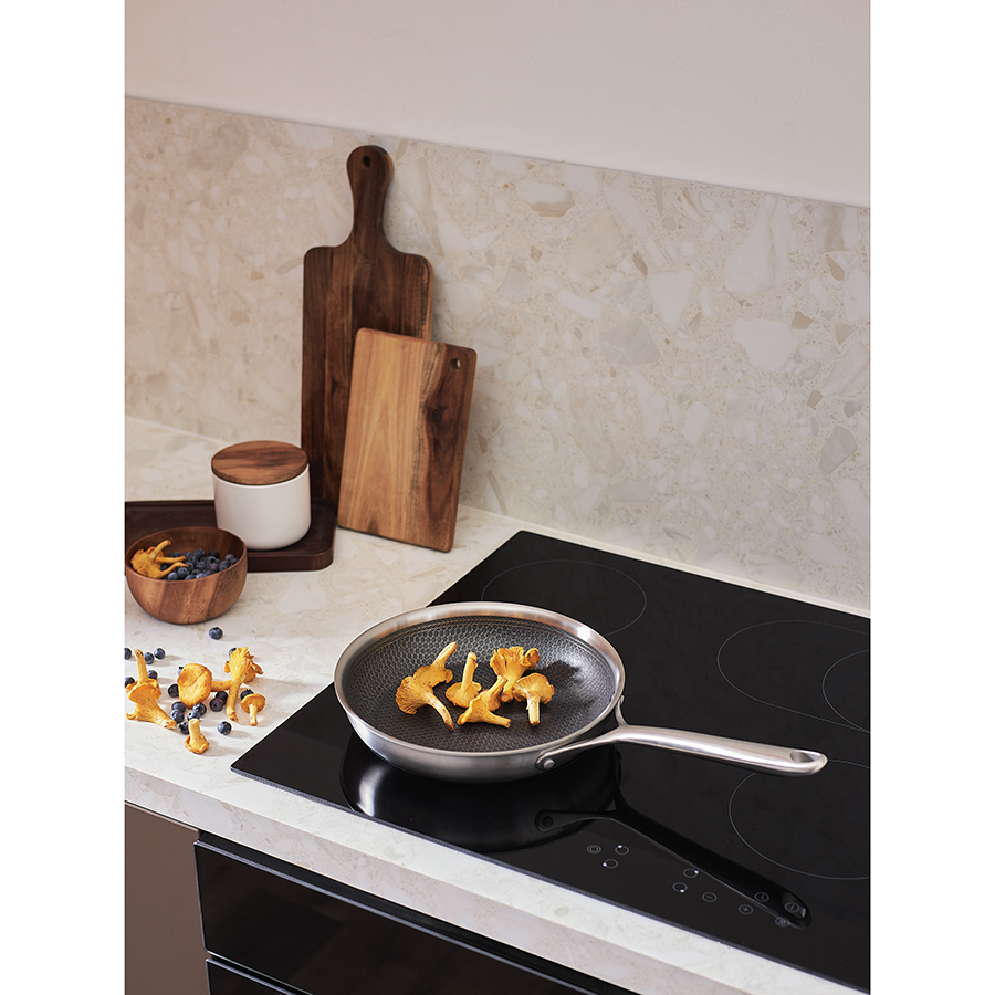 Посуда из нержавеющей стали 3Ply Etalon изготовлена по инновационной технологии TRI-PLY – ее стенки и дно имеют два слоя стали, между которыми предусмотрен слой алюминия. Эта особенность обеспечивает изделиям превосходную теплопроводность, практичность и долговечность. Коллекция идеально подходит для любых типов плит и впечатляет трендовым дизайном – сочетание современных форм и матовой поверхности делает ее настоящим украшением любой кухни.