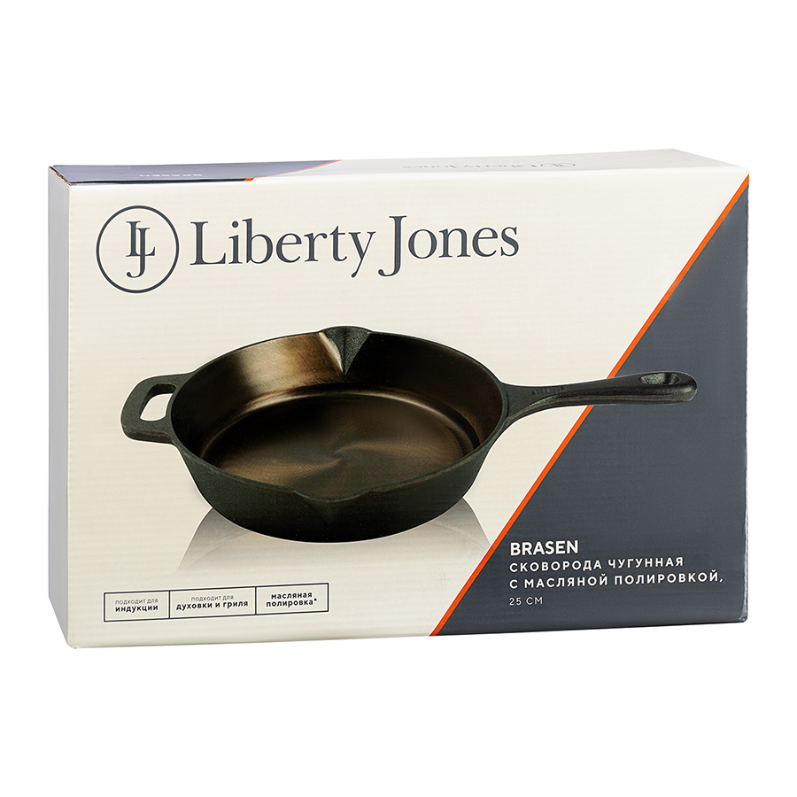 Сковорода чугунная Brasen с масляной полировкой, ?25 см, Liberty Jones