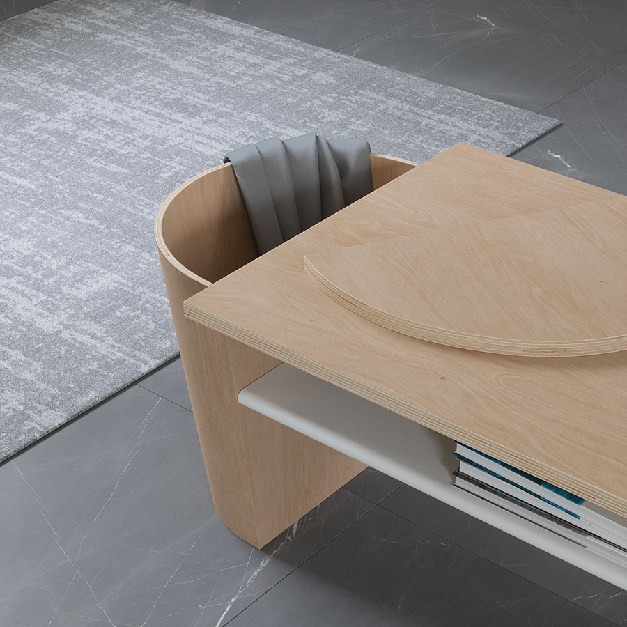 Стол изготовлен из фанеры. Под столешницей располагается практичная полка.