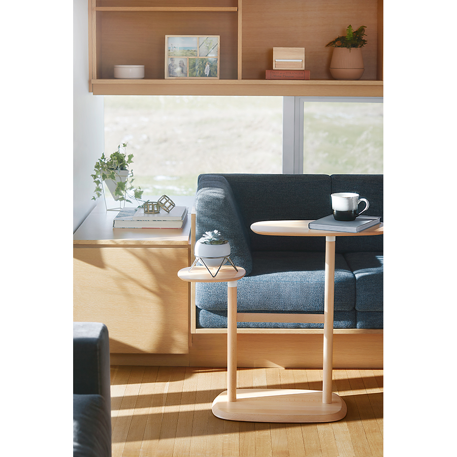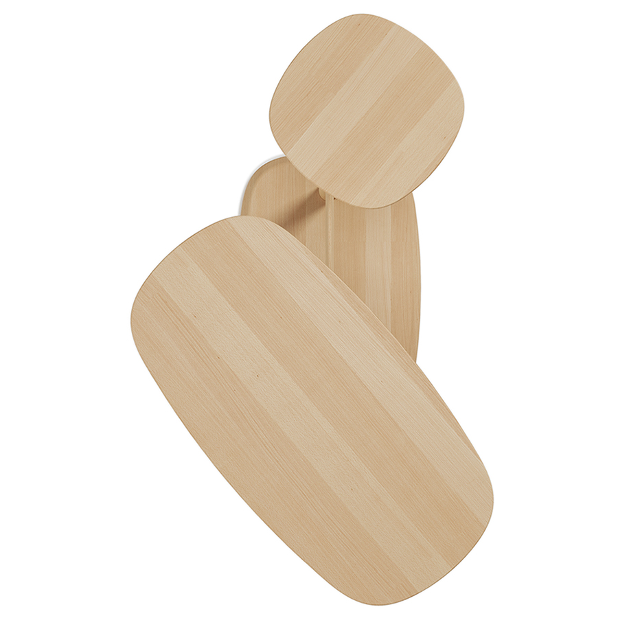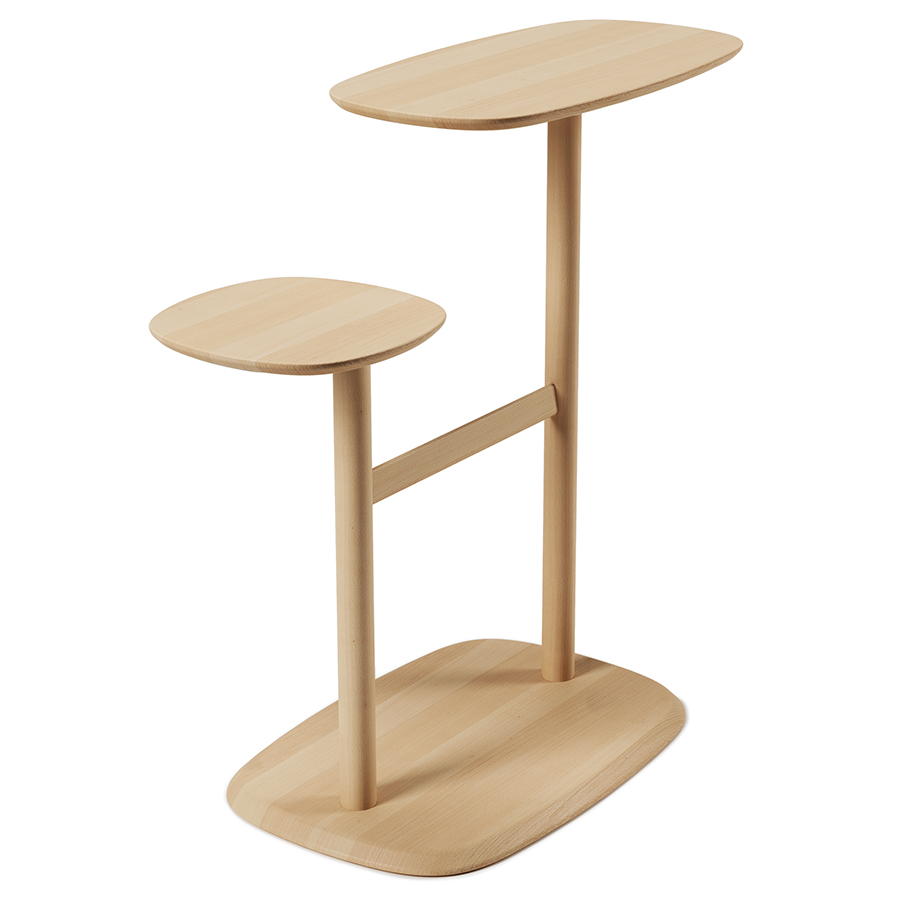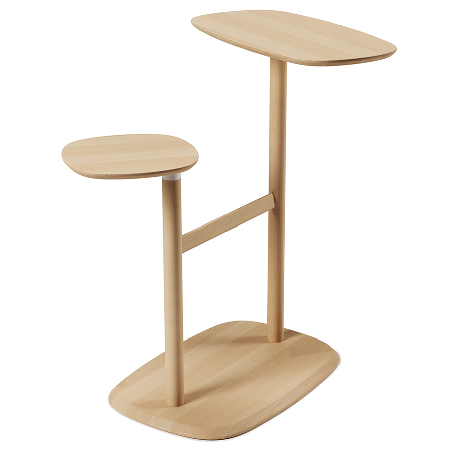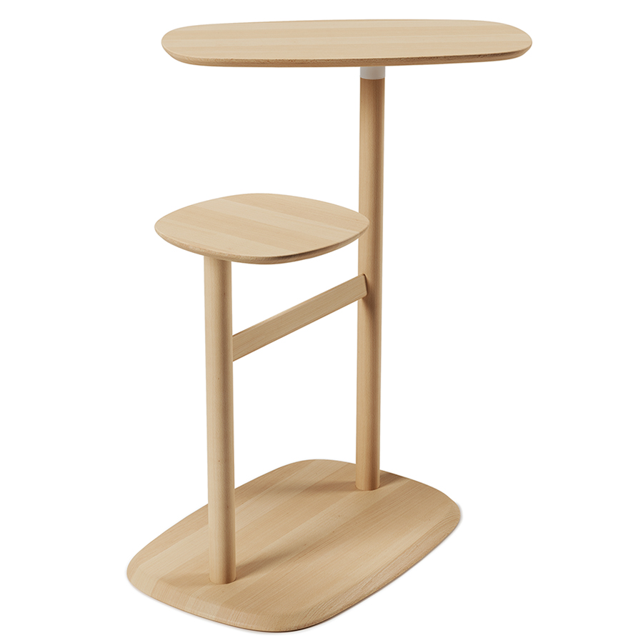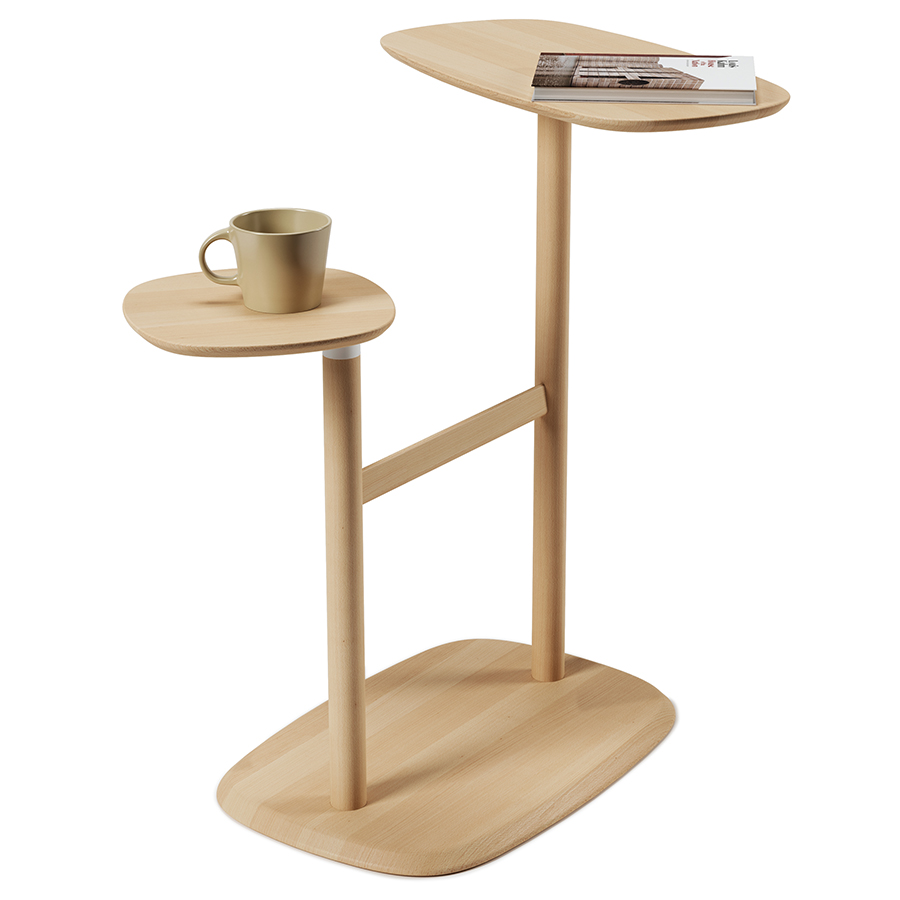 Стол изготовлен из натурального дерева. Основание столика можно разместить под диваном или креслом для экономии места. Столешницы легко менять местами, а на перекладину можно повесить плед. Размеры: 69 x 44 x 10 см.
