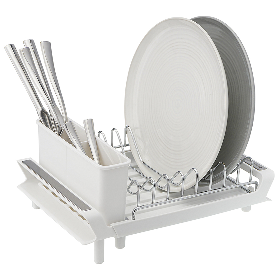Сушилка Atle – компактная, но в то же время вместительная модель с раздвижной конструкцией, в которой предусмотрены отделения для посуды и кухонных принадлежностей. Удобное размещение и надежную фиксацию тарелок и других емкостей обеспечивают железные разделители. Поддон выполнен из практичного полипропилена, который легко моется. Стальные элементы на корпусе имеют специальное покрытие против отпечатков пальцев. Настольную сушилку можно размещать в любом месте и для ее установки не требуется делать отверстия в стене.