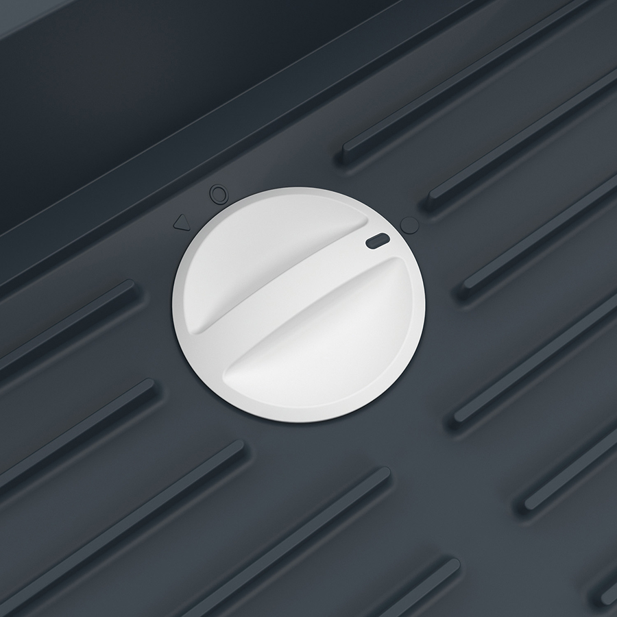 При необходимости изделие раздвигается. Излишки воды стекают через встроенный слив. Вода перекрывается поворотом слива, благодаря чему сушилку можно переносить с места на место, не проливая жидкость. Металлические стойки с мягкими зубцами бережно удерживают тарелки, защищая их от царапин. Съемный контейнер для столовых приборов оснащён нескользящими ножками, которые обеспечивают надежную устойчивость. Стальная решетка снимается для удобной очистки.