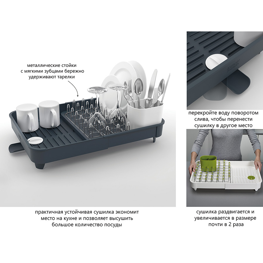 Сушилка для посуды раздвижная Extend серая, Joseph Joseph