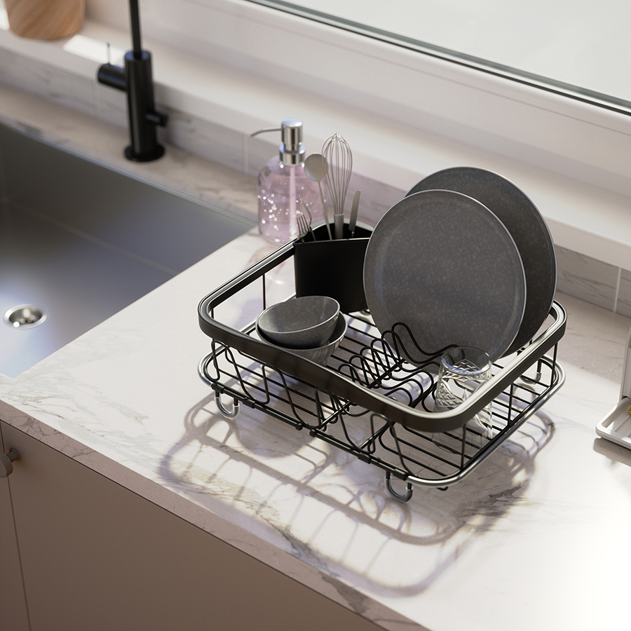 Сушилка для посуды Sinkin, 28х14х47 см, черная, UMBRA