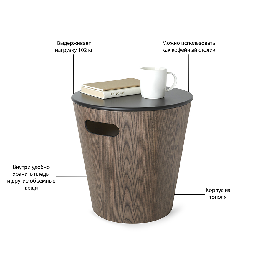 Woodrow может быть использован как приставной, кофейный столик или как табурет, а также для хранения под крышкой журналов, детских игрушек и других мелочей. , ,Дизайнер: Wesley Chau.