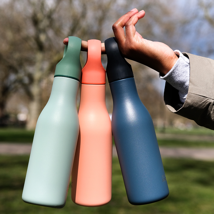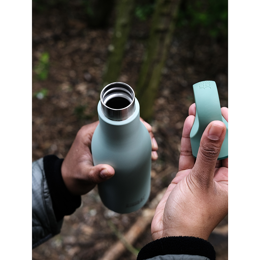 Двойные стенки из нержавеющей стали 18/8 сохраняют температуру холодных напитков до 24 часов и горячих – до 12 часов. Крышка эргономичной формы обеспечивает удобство при переноске и легко крепится на горлышко бутылки, избавляя от необходимости следить за тем, чтобы она не потерялась. Поставляется в подарочной упаковке.