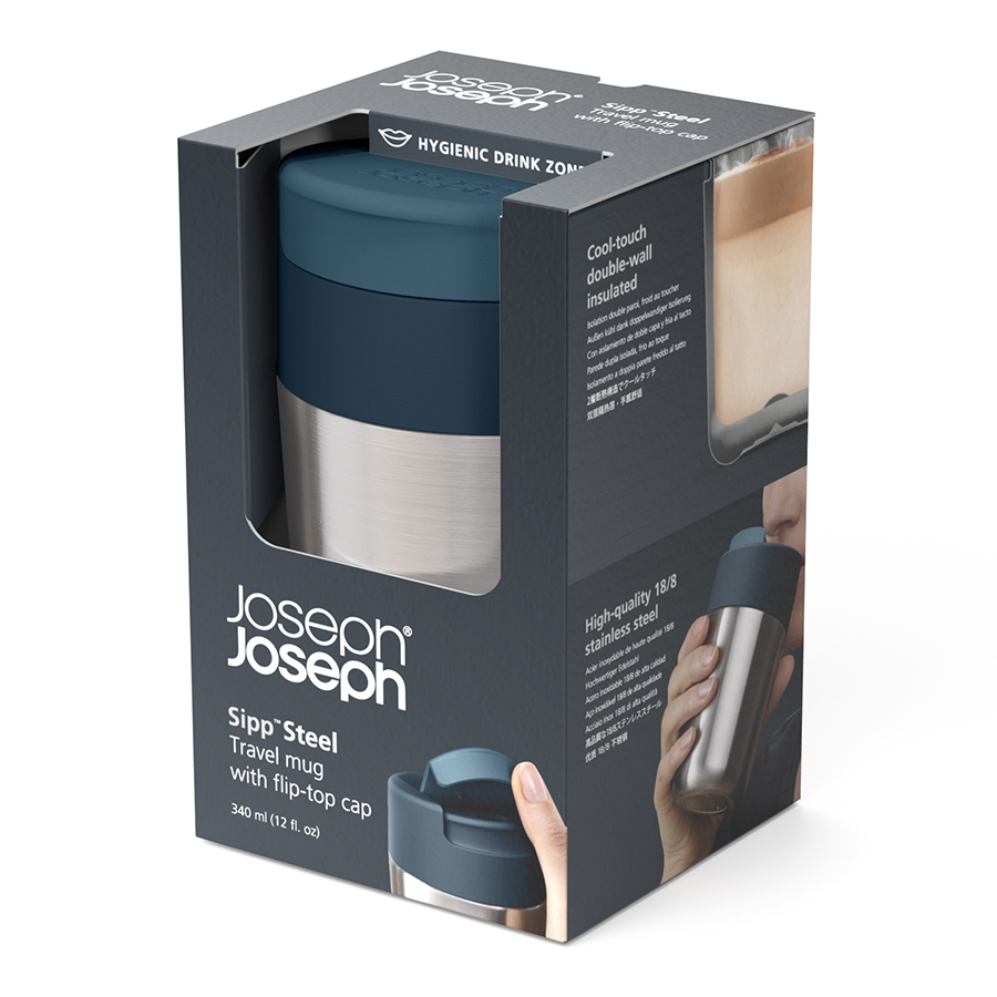 Термокружка Sipp Steel, 340 мл, антрацит, Joseph Joseph