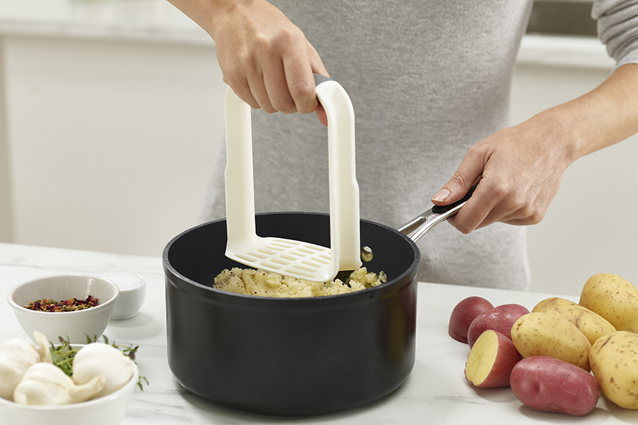 Эргономичная ручка и широкая затирающая поверхность упрощают процесс готовки. Толкушка выполнена из экологически безопасного полипропилена. Закругленные края удобны для работы с круглыми кастрюлями. Вытянутые отверстия обеспечивают легкое мытье.