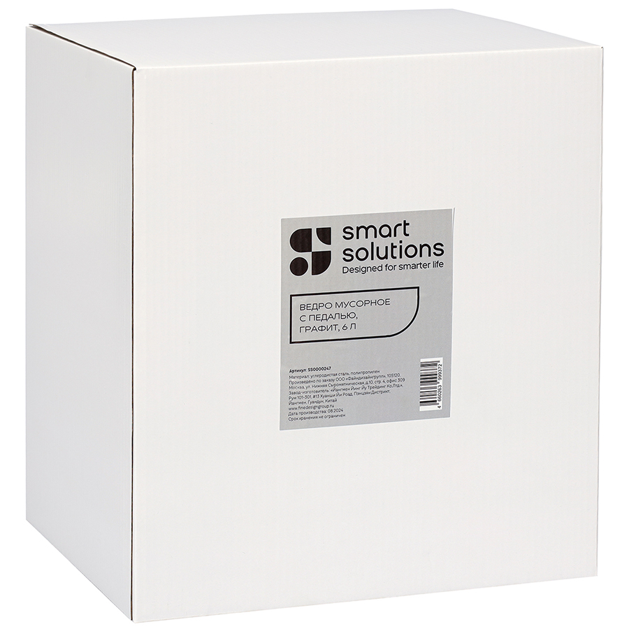 Ведро мусорное с педалью, графит, 6 л, Smart Solutions
