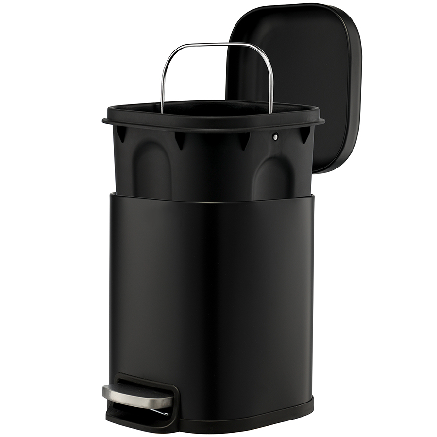 Материалы: углеродистая сталь с порошковым покрытием, полипропилен. Размеры: 21,5х21,5х30 см. Длина с педалью: 27 см. Объем: 6 л. Цвет: графит.