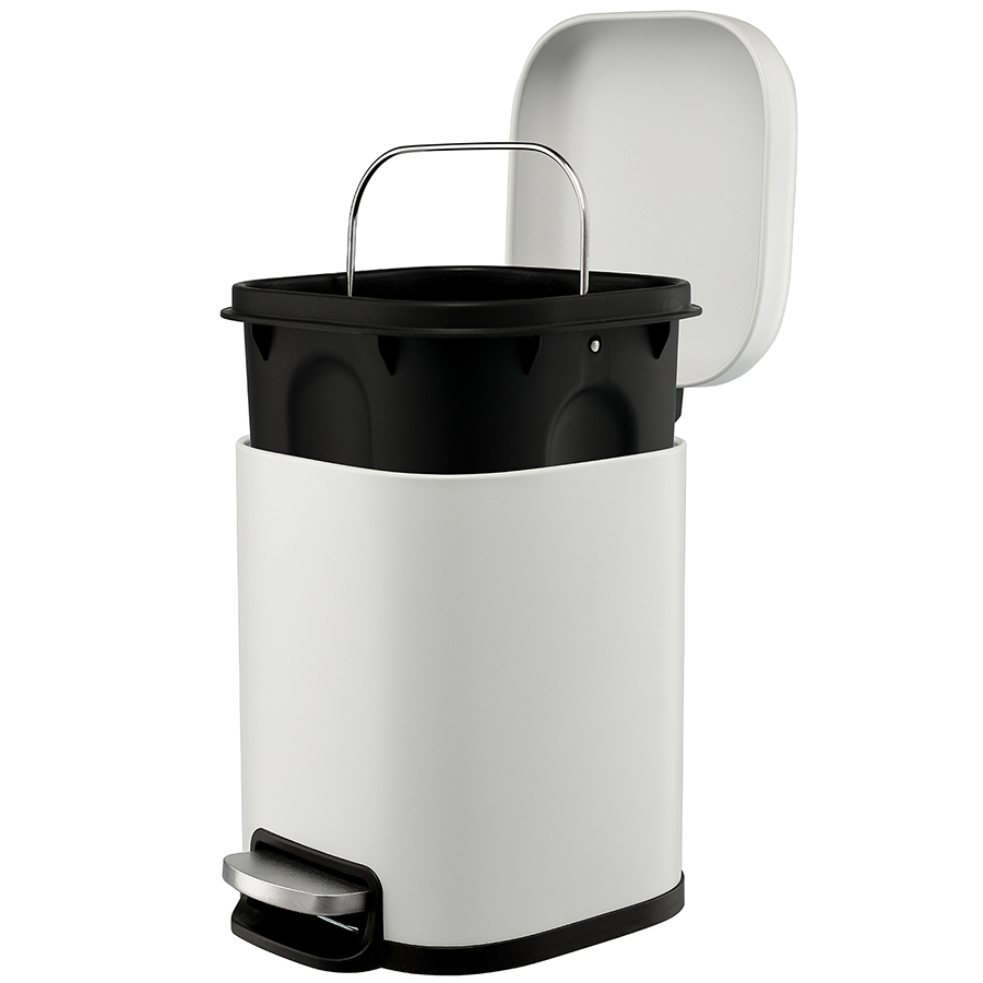 Материалы: углеродистая сталь с порошковым покрытием, полипропилен. Размеры: 21,5х21,5х30 см. Длина с педалью: 27 см. Объем: 6 л. Цвет: светло-серый.