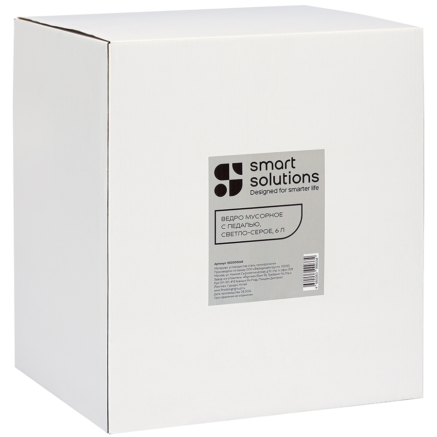 Ведро мусорное с педалью, светло-серое, 6 л, Smart Solutions