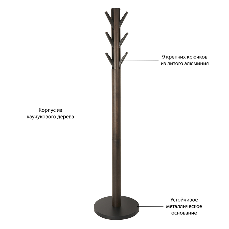Вешалка оснащена 9 откидными металлическими крючками: когда они не используются, их можно легко сложить. Конструкция легко собирается.