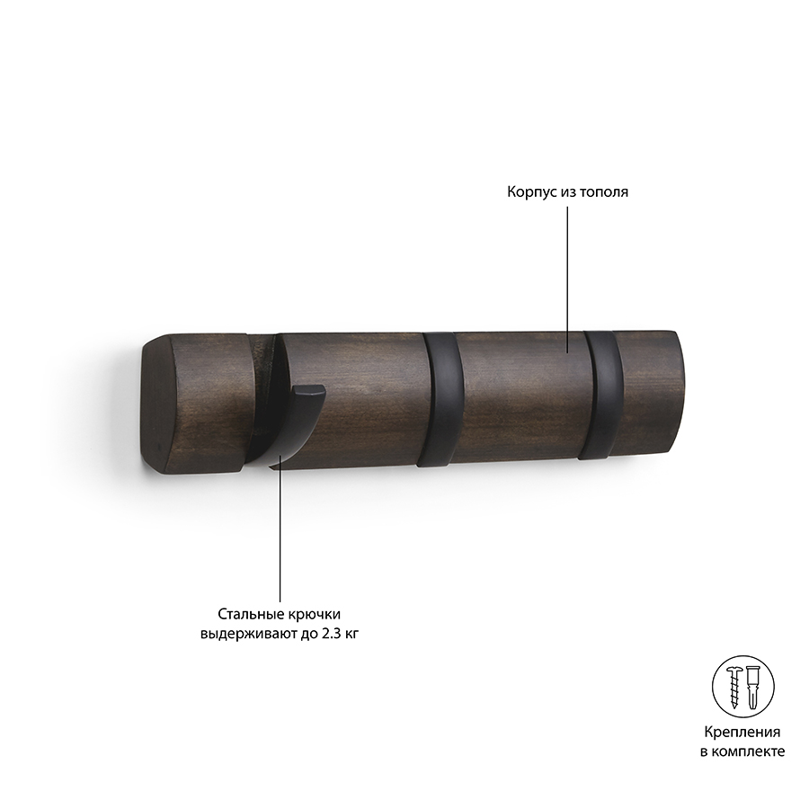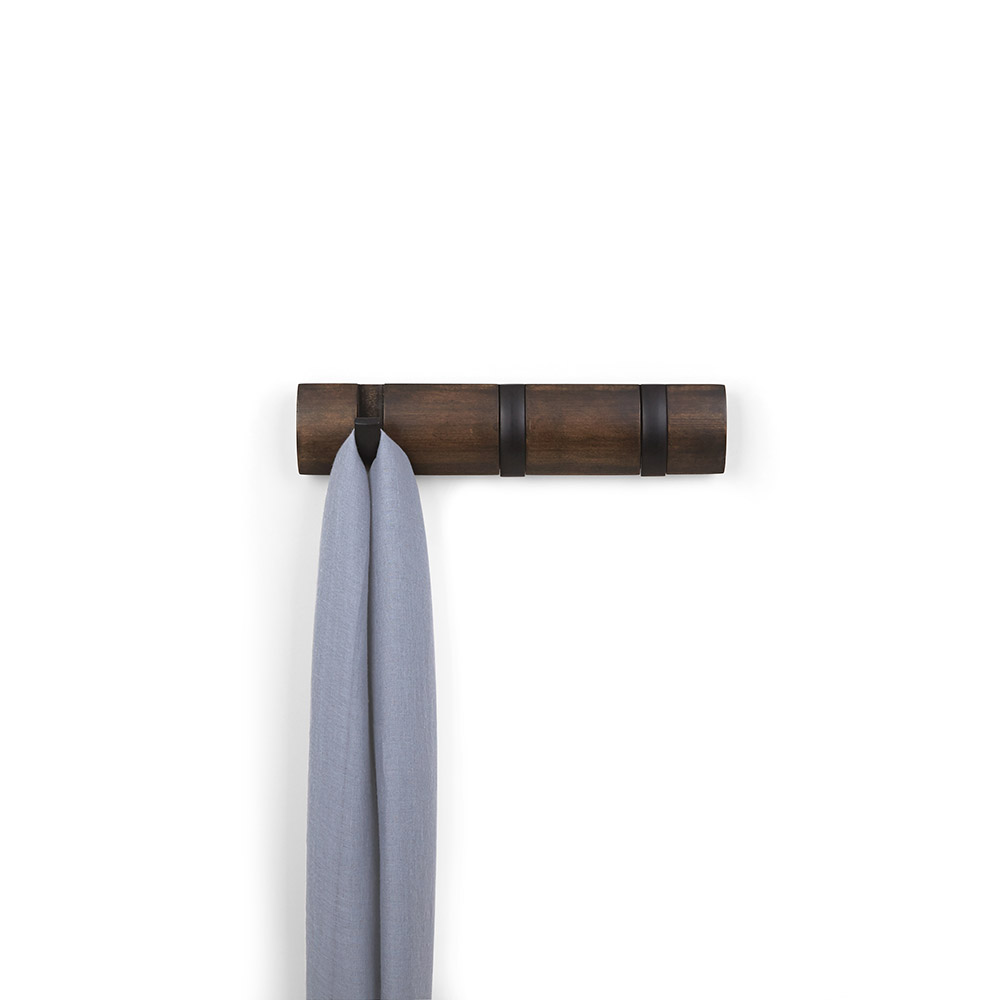 Вешалка настенная FLIP 3 крючка чёрная-орех, Umbra