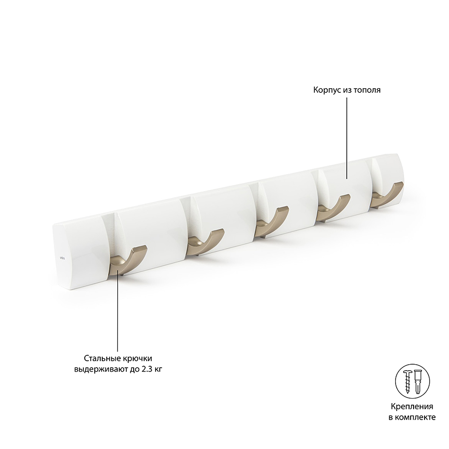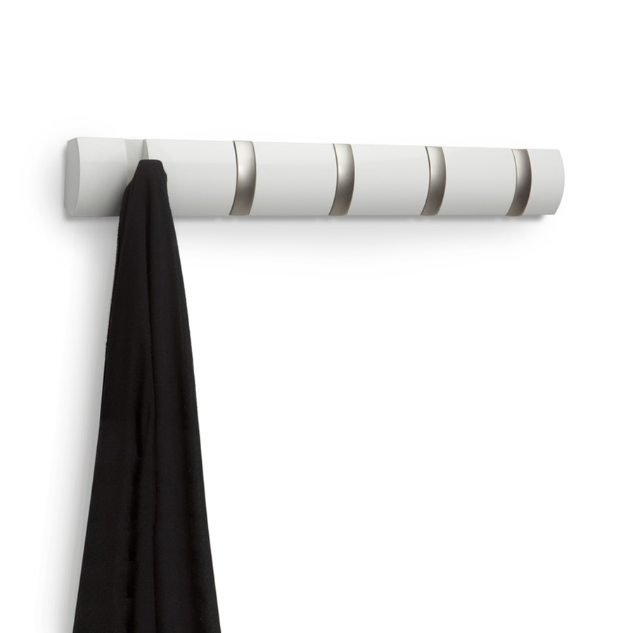 Вешалка настенная горизонтальная Flip 5 крючков белая, Umbra