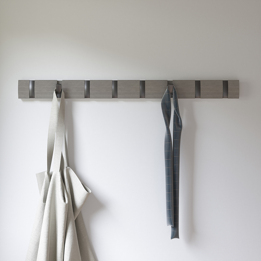 Вешалка настенная горизонтальная FLIP 8 крючков серая, олово, Umbra