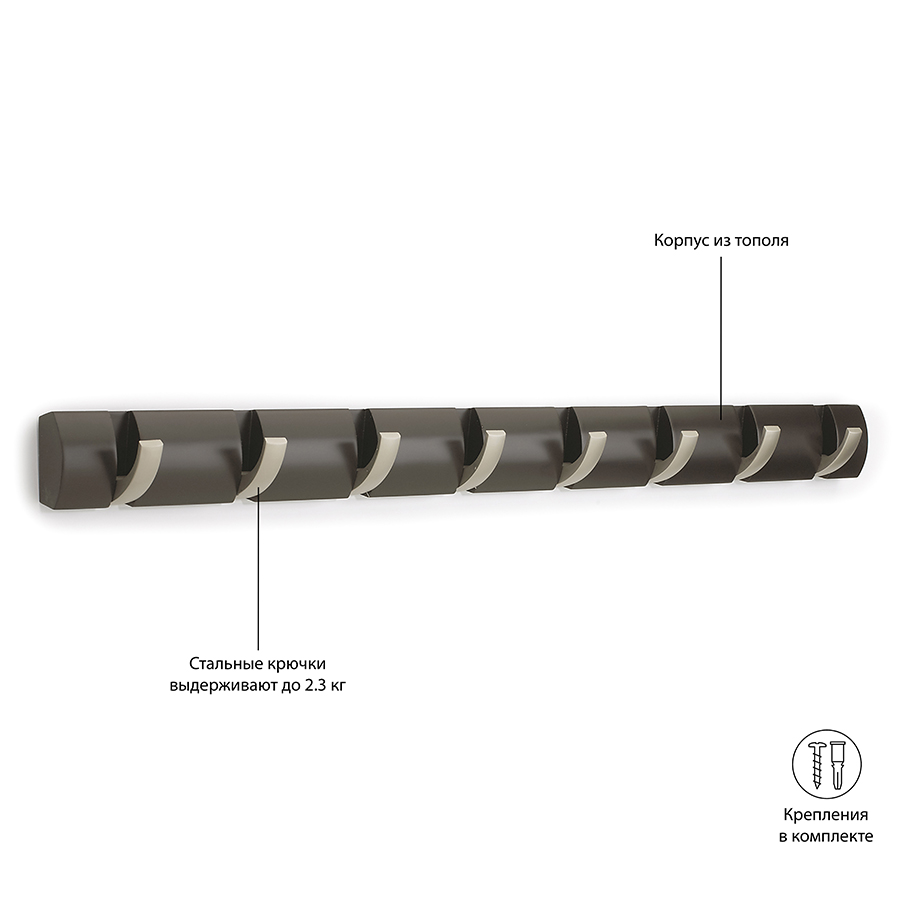 Вешалка настенная горизонтальная Flip 8 крючков эспрессо, Umbra