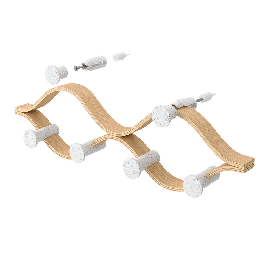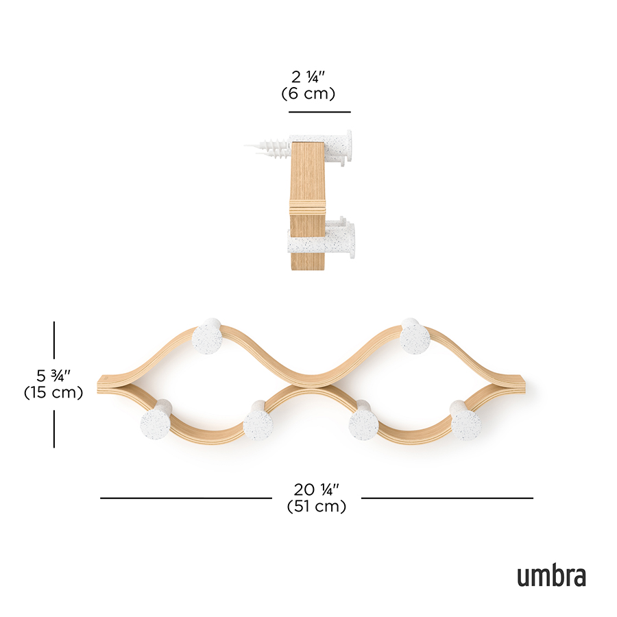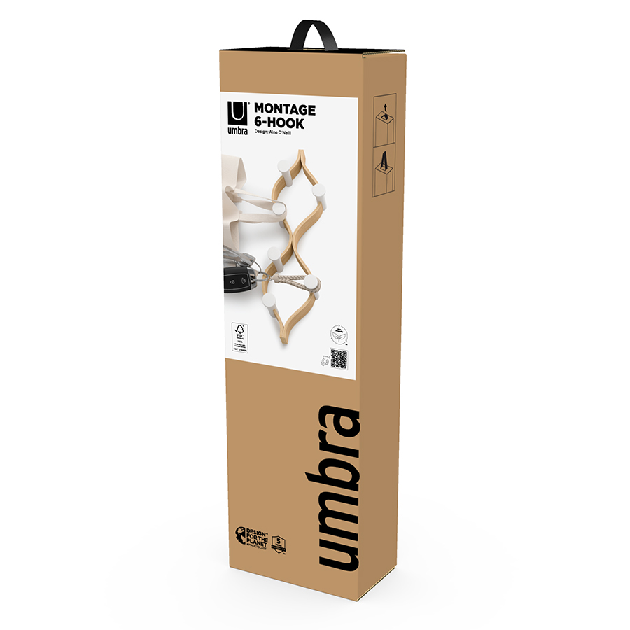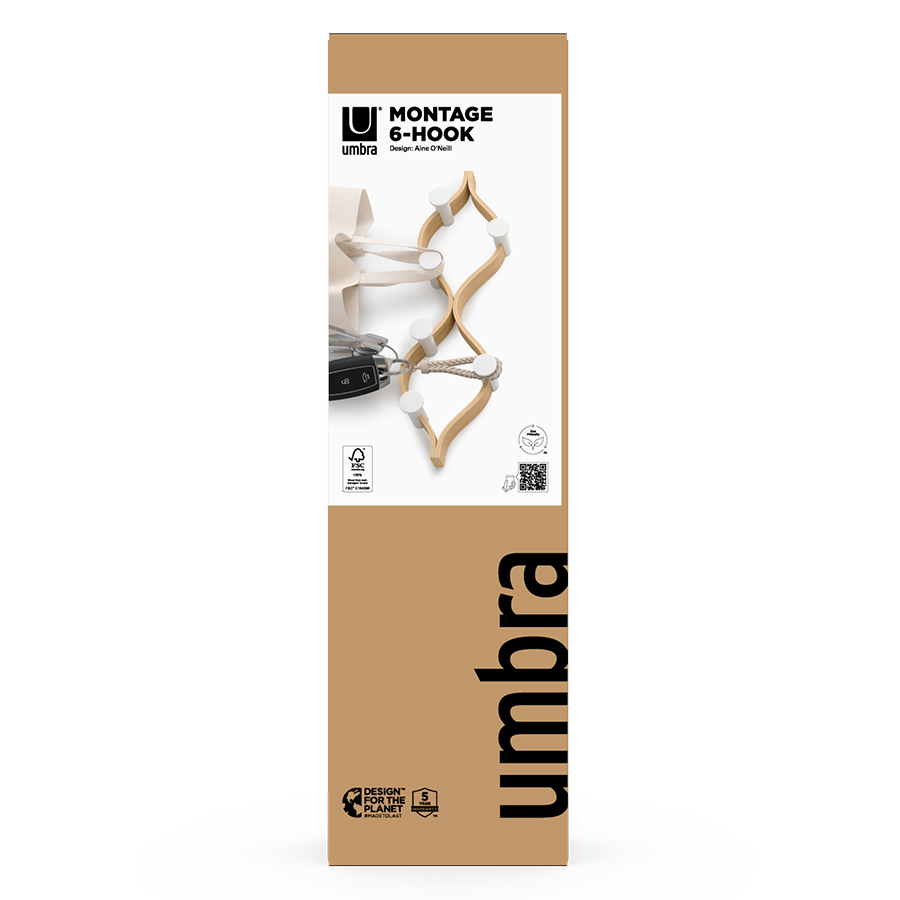 Вешалка настенная Montage, 6 крючков, натуральное дерево/белая, UMBRA