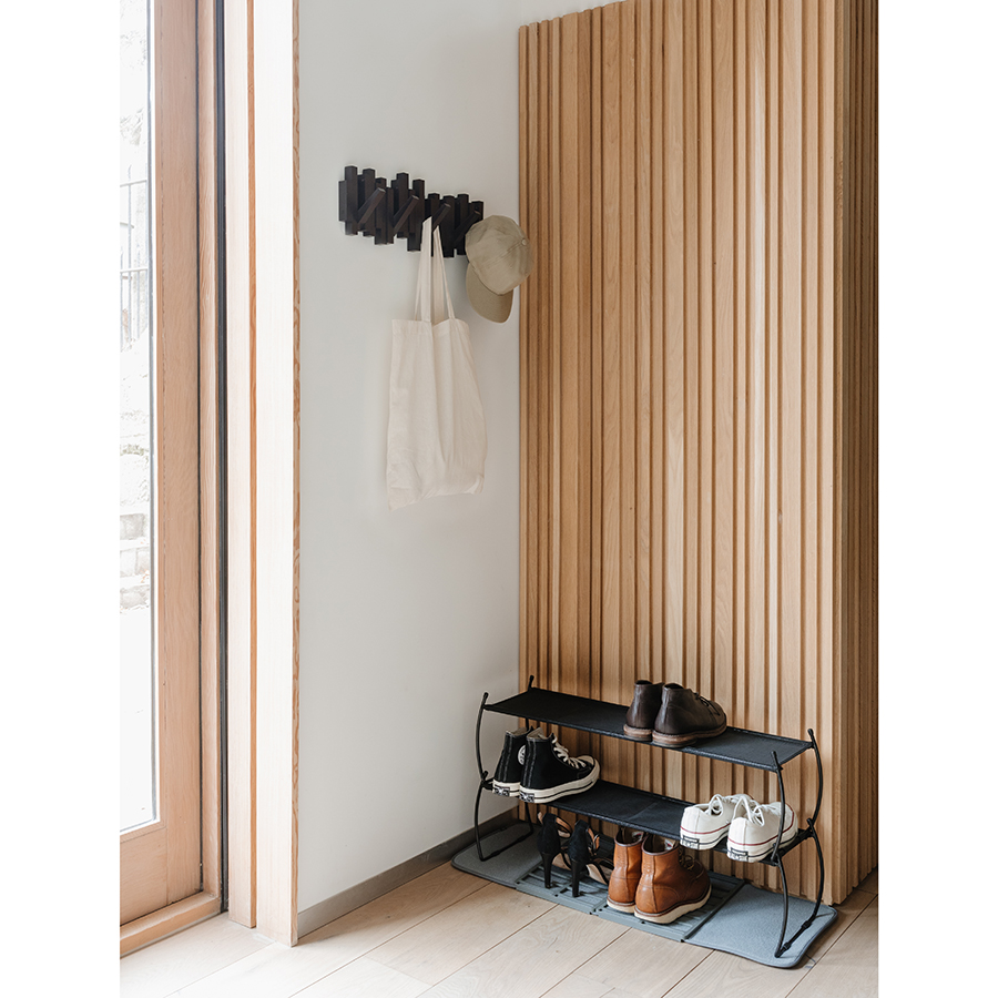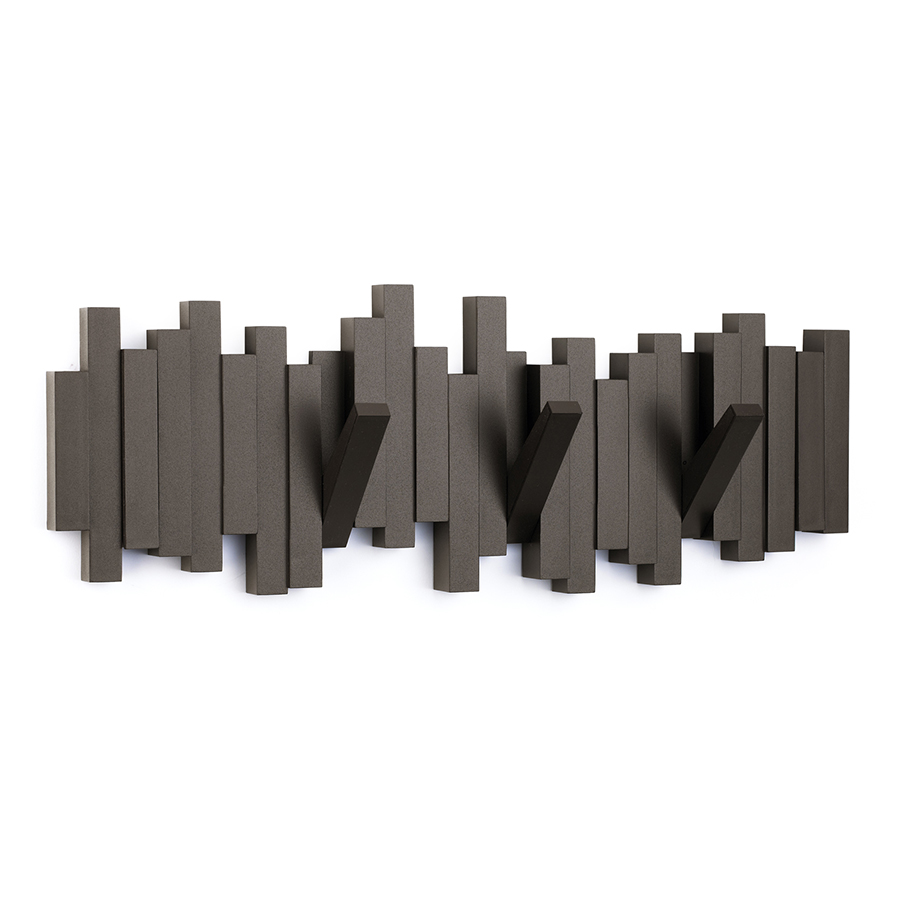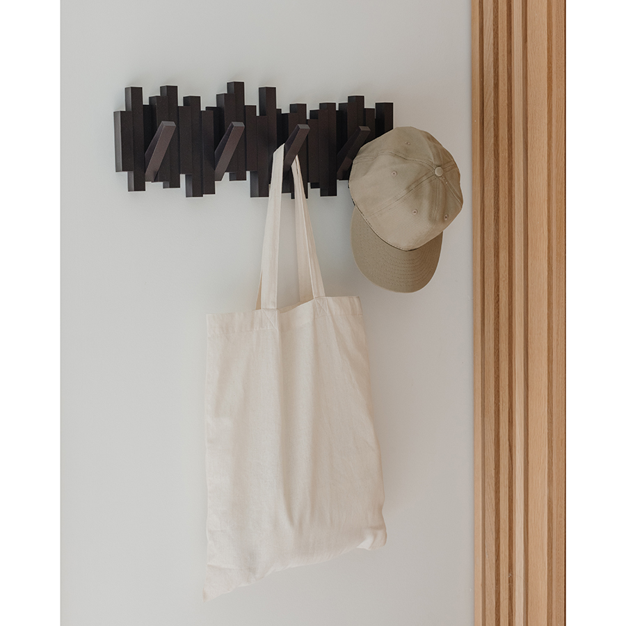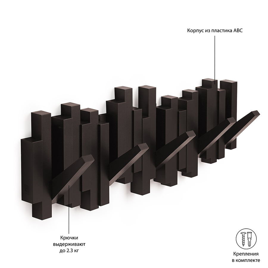 5 прочных крючков при необходимости складываются, превращая вешалку в декоративный элемент. Каждый крючок выдерживает вес до 2,26 кг.