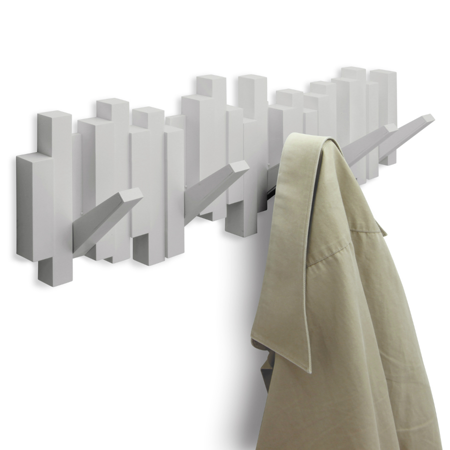 5 прочных крючков при необходимости складываются, превращая вешалку в декоративный элемент. Каждый крючок выдерживает вес до 2,26 кг.