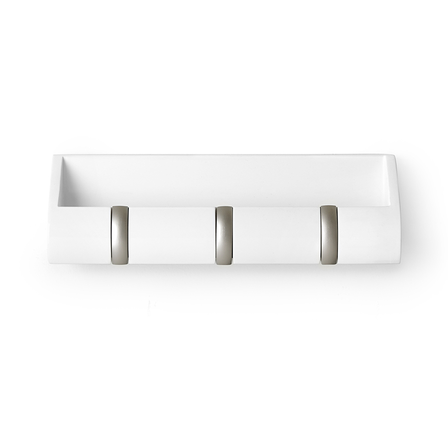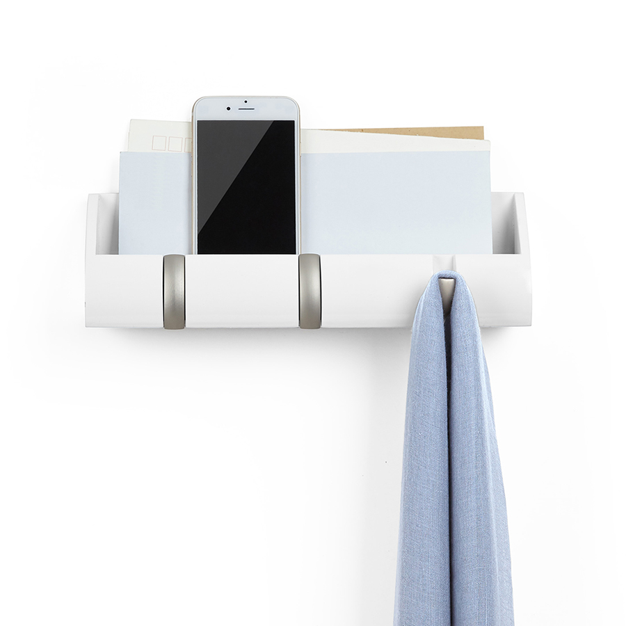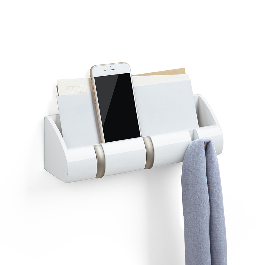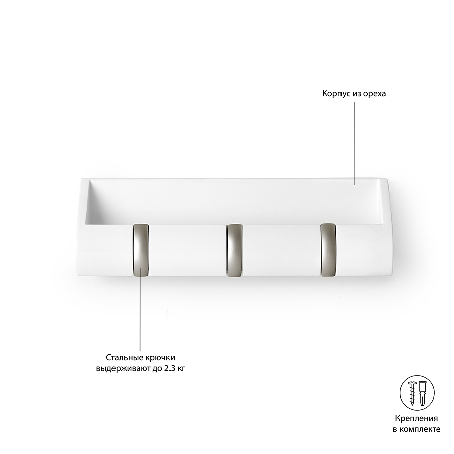 Есть вместительное отделение для телефона, портмоне или квитанций, а также складные металлические крючки для ключей, аксессуаров или небольших предметов одежды.