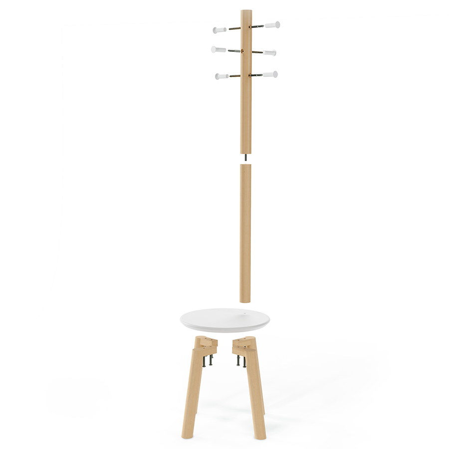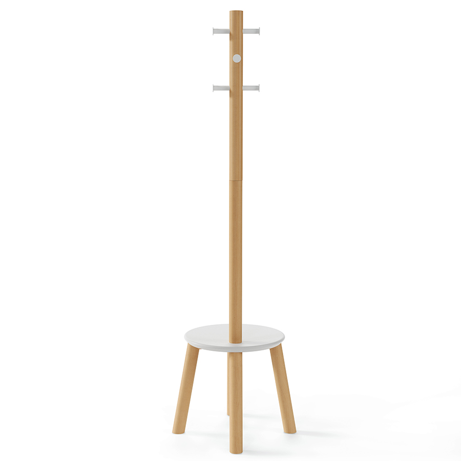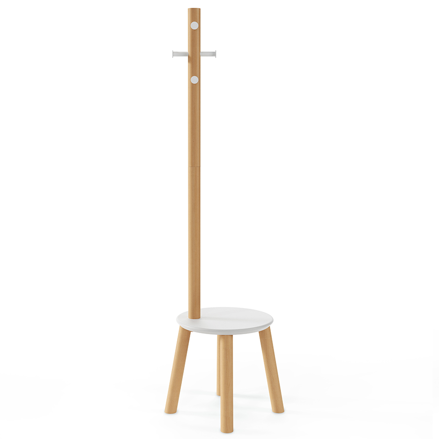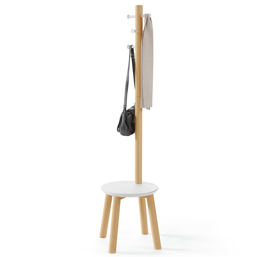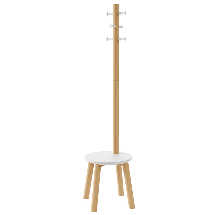 Вешалка-табурет Pillar напольная белый-натуральное дерево, Umbra