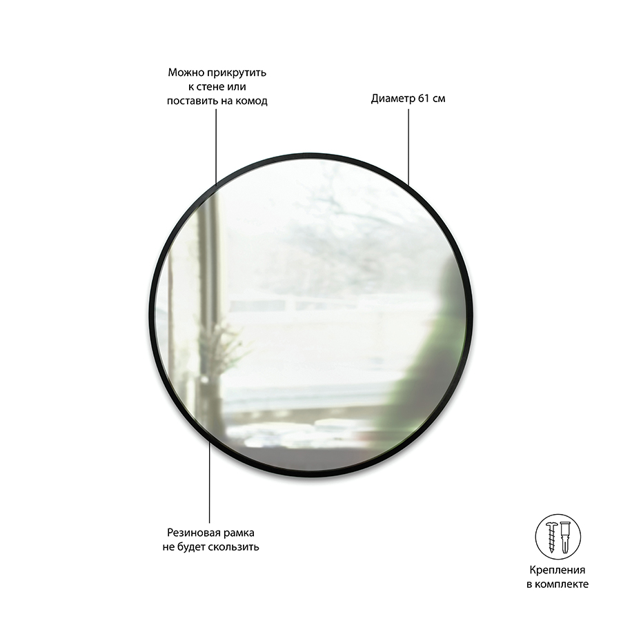 Черный резиновый ободок создает ненавязчивый акцент и защищает изделие от повреждений. Диаметр: 61 см.