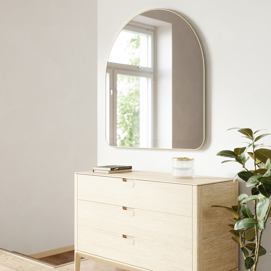 Большое зеркало в минималистичном стиле визуально расширит пространство коридора или прихожей.