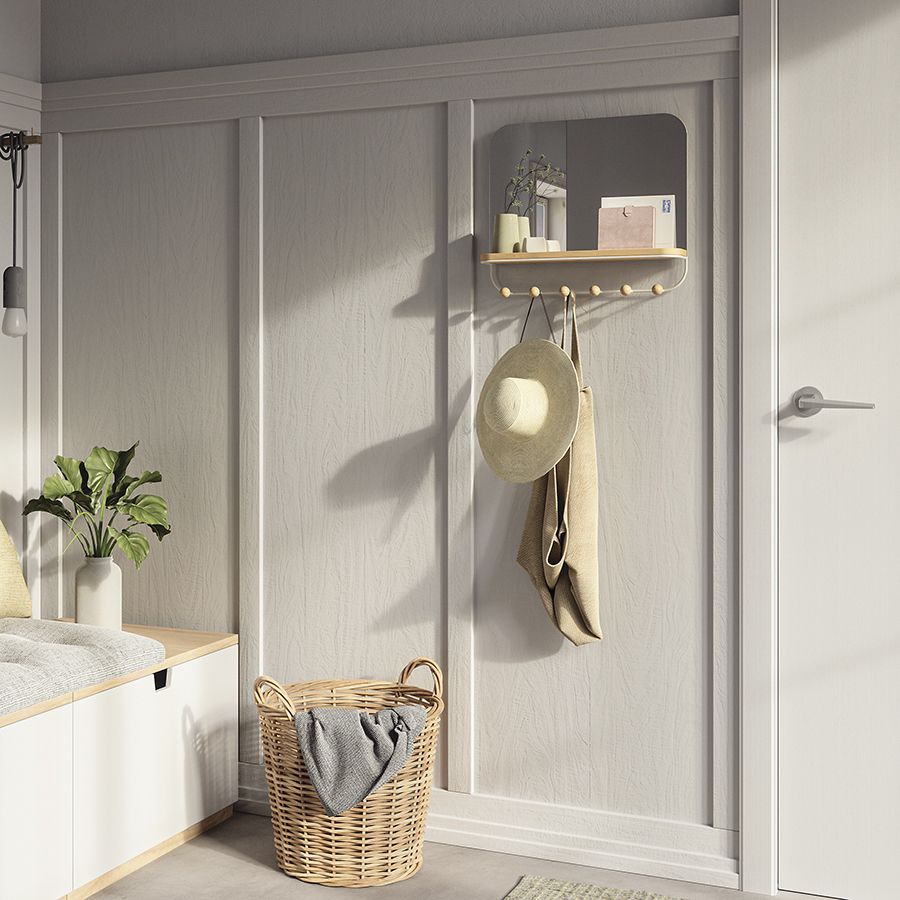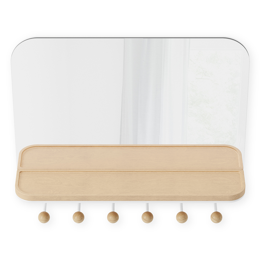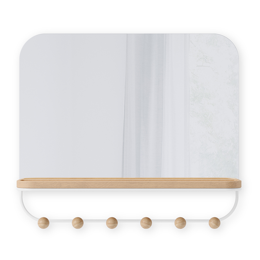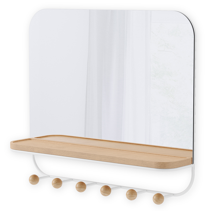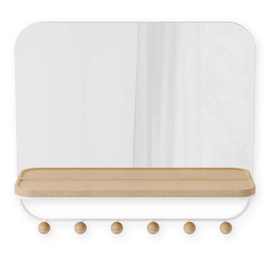 Зеркало с крючками для аксессуаров Estique, 46х41 см, белое/натуральное дерево, UMBRA