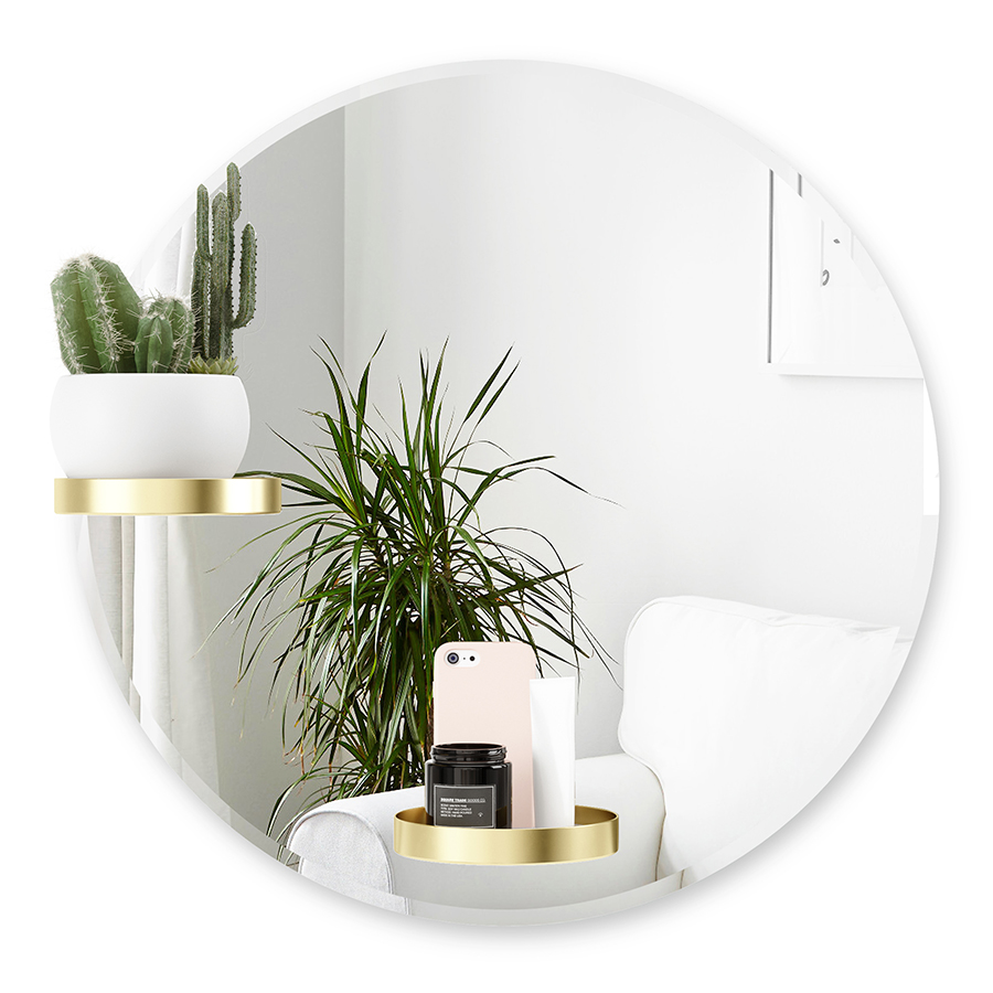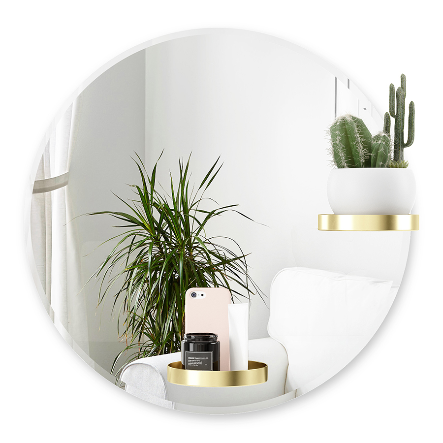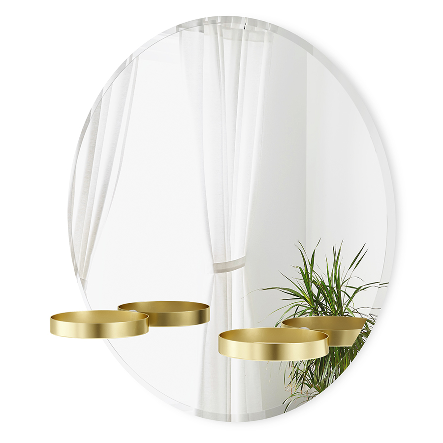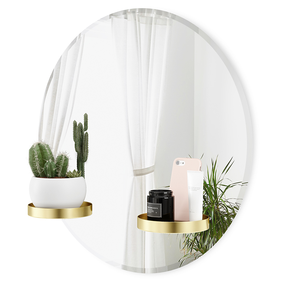 Зеркало с полочками Perch 60 см латунь, Umbra